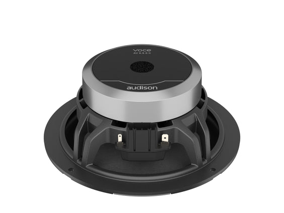The Audison VOCE II AVK 6 S II system, equipped with the high-power AV 6.5 S II woofer and Hi-Res Audio certified AV 1.0 II tweeter, delivers superb performance. The integration of AVCX 2 W and AVCX 2 T crossovers simplifies installation while enabling advanced sound tuning, including bi-amplification and meticulous adjustments for tweeter level and mid contour. These crossovers, built with high-quality components, ensure a harmoniously balanced audio experience, enhancing durability and clarity. This setup achieves seamless integration and superior sound customization, making it an ideal solution for sophisticated car audio upgrades.