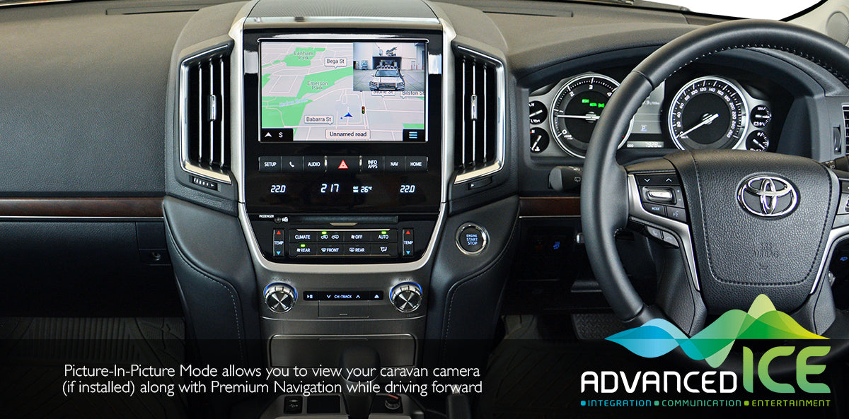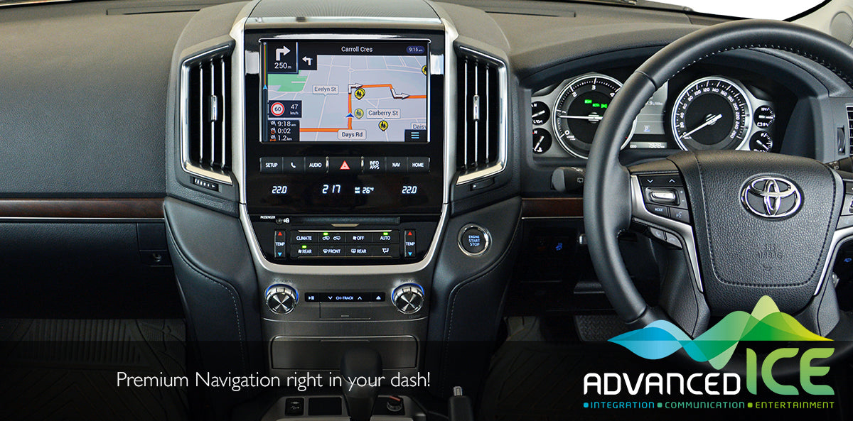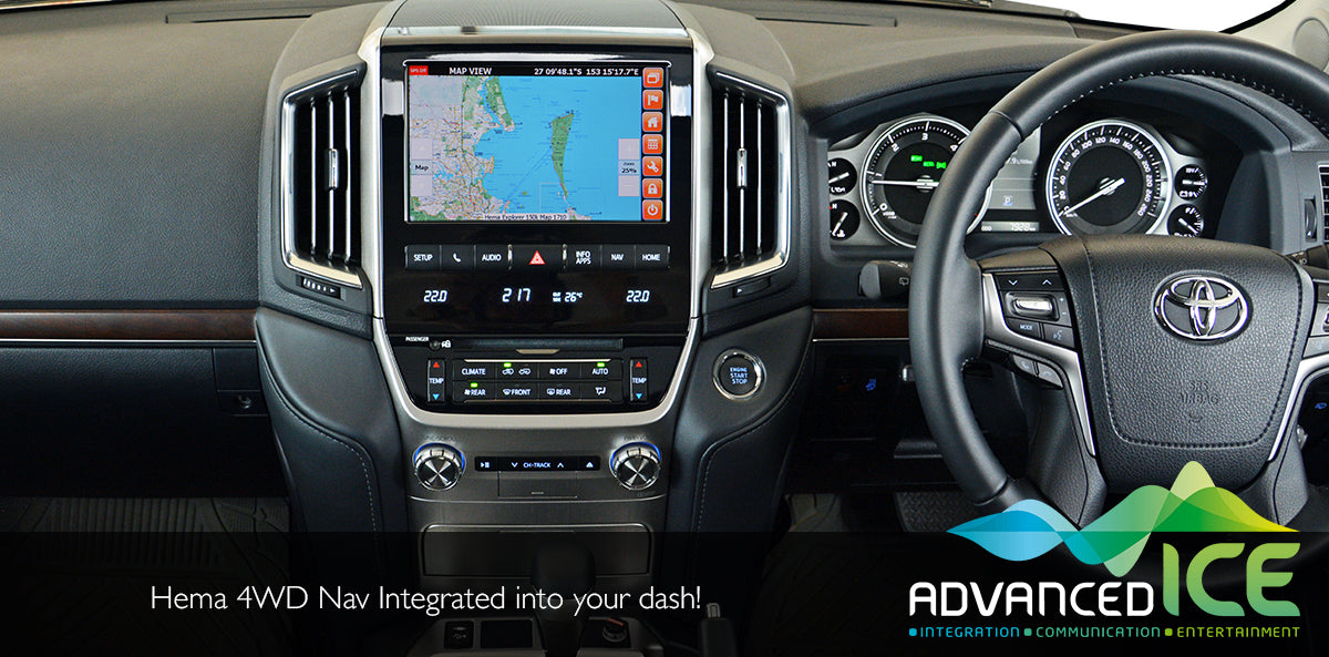 The VX and Sahara LandCruiser 200 Series have a beautiful high resolution 9 inch display and our Advanced ICE Integrated Navigation system adds full iGO primo NextGen Navigation and Hema 4WD Nav with their complete collection of digital maps into the factory screen. A simple long press the “NAV” button will allow complete control of the iGO Street mapping and Hema Maps directly through the existing touch screen in the vehicle.