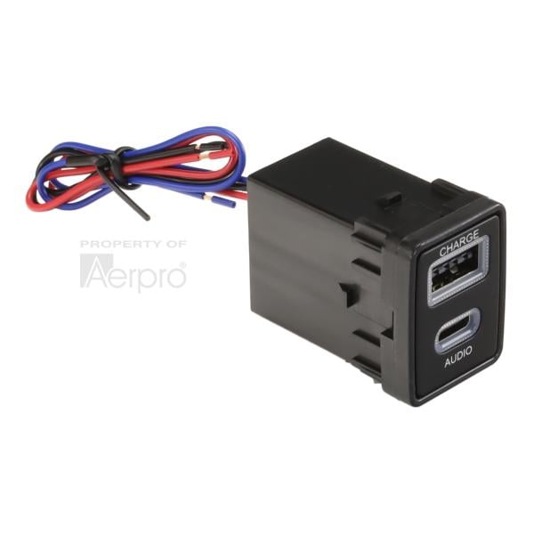 Aerpro APUSBNS3 USB-C Passthrough and USB Charge has been designed specifically to suit various Nissan vehicles. It replaces the spare factory switch blanking plates in the vehicle dashboard that measure 24mm wide x 31mm high, providing seamless USB integration for your vehicle. Featuring two USB ports, USB-C passthrough is designed for smartphone and device fast charging at 3A max and the other provides sync for Audio, CarPlay & Android Auto when connected to the rear USB input on compatible aftermarket headunits. The second USB port is used for charging only allowing for multiple phones to be charged on the go! The charge port illuminates blue making it easy to find day and night. The clip-in design combined with the simple 3 wire plus USB connection, makes it quick and easy to install, providing a professional and discreet USB upgrade solution for the vehicle.