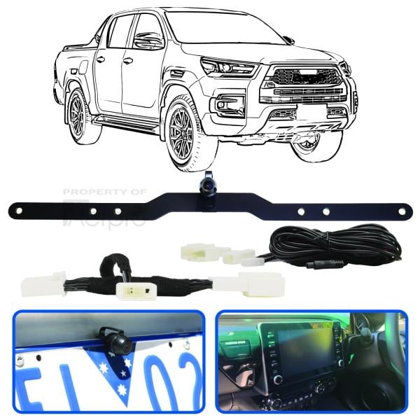 The Aerpro APVTY15C Vehicle Specific Reverse Camera Kit connects to the OEM factory display in Toyota Hilux (2020-on) models with a 26 pin OEM camera connection. Simple to install, the kit comes supplied with a vehicle specific t-harness that connects in line with the factory wiring harness (OEM plug/socket is located behind passenger kick panel trim). The included IP67 rated stealth registration plate mount reverse camera fits discreetly to the rear numberplate, making it suitable for tray or tub style ute backs. Optional parking guidelines assist with reverse parking and the 90 degree lens angle significantly reduces blindspots. The Aerpro APVTY15C Vehicle Specific Reverse Camera for Toyota Hilux is the perfect safety addition for your vehicle.