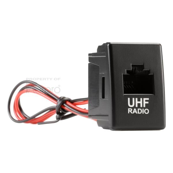 Aerpro ARJ45IZ1 RJ45 Pass-Through Adaptor has been designed specifically to suit various Holden & Isuzu vehicles. It replaces the spare factory switch blanking plates in the vehicle dashboard that measure 22.5mm wide x 33.5mm high, providing a professional and seamless integration solution for your vehicle when installing a hideaway UHF radio with remote microphone. The connection type is RJ45 pass-through, the cable supplied with the hideaway UHF radio plugs into the rear of the adaptor, while the plug on the end of the remote microphone will plug into the face of the adaptor. The UHF Radio text illuminates blue making it easy to find day and night and the clip-in design combined with the simple 2 wire connection for illumination, makes it quick and easy to install.