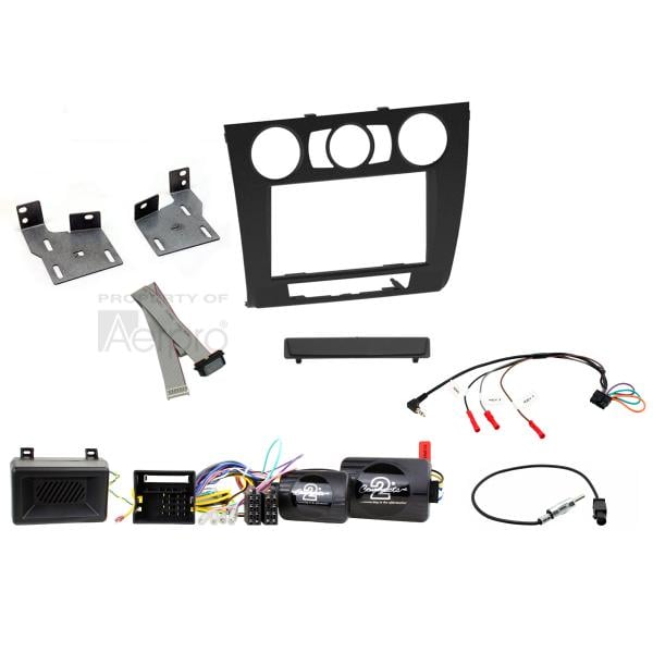 Complete a full aftermarket double din headunit installation in your BMW 1 Series (2004-2011), models with manual climate control, from start to finish with this Aerpro vehicle specific headunit installation kit, containing everything you need for a perfect upgrade in one box. This kit includes: black double din facia kit, metal mounting brackets, blanking cover panel, ribbon cable, steering wheel control interface, warning tone interface with chime speaker, antenna adaptor and universal SWC patch lead. Installation of the aftermarket headunit is simplified even further when paired with the optional Aerpro APP9 Headunit Secondary ISO Harness & SWC Patch Lead, which connects between the aftermarket headunit and the Aerpro Steering Wheel Control Interface. The included interface is CANBUS compatible and provides various outputs including Reverse Trigger, Park Brake, Speed Pulse and Illumination. It also has a yellow constant power cable that needs to be wired directly to the vehicles battery. The interface includes a chime speaker which retains audible vehicle alerts including Oil/Washer Fluid Level, Door Open, Seat Belt and Parking Sensor Audio.