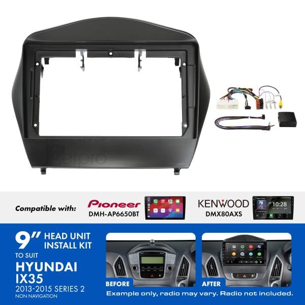 The Aerpro AKHY21 9" Installation Kit comes with all of the components required to install a 9" trapezoid shaped radio into your Hyundai iX35 (2013-2015) vehicles without factory navigation, whilst maintaining important vehicle features such as Steering Wheel Control functionality.