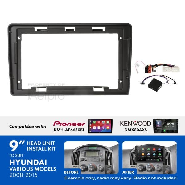 The Aerpro AKHY6 9" Installation Kit comes with all of the components required to install a 9" trapezoid shaped radio into your Hyundai iLoad and iMax (2008-2015) vehicles with AST button on factory radio whilst maintaining important vehicle features such as Steering Wheel Control functionality.