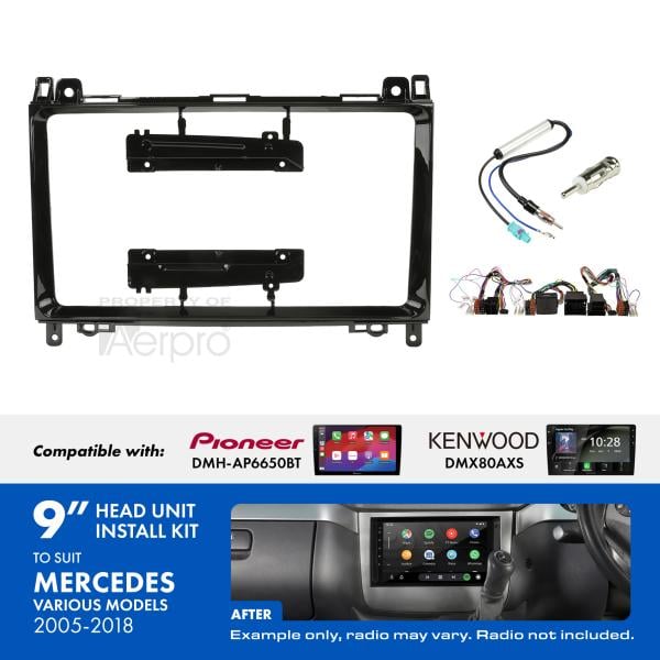 The Aerpro AKMC2 9" Installation Kit comes with all of the components required to install a 9" trapezoid shaped radio into Various Mercedes and Volkswagen (2005-2018) vehicles whilst maintaining important vehicle features such as Steering Wheel Control functionality.