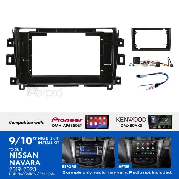 The Aerpro AKNI15 9/10" Installation Kit comes with all of the components required to install a 9/10" trapezoid shaped radio into your Nissan Navara (2019-2023) vehicles without factory Navigation or 360 camera, whilst maintaining important vehicle features such as Steering Wheel Control functionality.