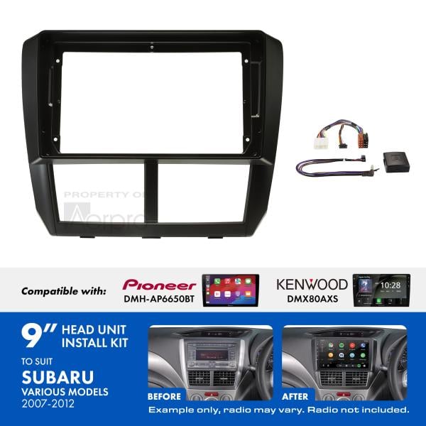 The Aerpro AKSU5 9" Installation Kit comes with all of the components required to install a 9" trapezoid shaped radio into your Subaru Forester 2007-2011, Impreza 2007-2011 and WRX 2007-2011 vehicles whilst maintaining important vehicle features such as Steering Wheel Control functionality.