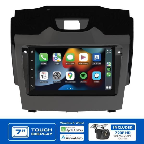 The Aerpro AM8063PC package offers a comprehensive head unit upgrade solution that includes an Aerpro AM7X Double DIN 7" Mechless AV Receiver, a Vehicle Specific Installation Kit and a 720P AHD universal reverse camera. Designed specifically for Holden Colorado (incuding Colorado 7) 2014-2016 vehicles with Mylink system vehicles, this package comes with all the necessary parts to complete the installation and retain important features such as steering wheel controls.