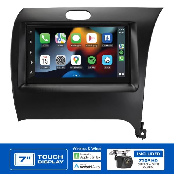 The Aerpro AM8118K package offers a comprehensive head unit upgrade solution that includes an Aerpro AM7X Double DIN 7" Mechless AV Receiver, a Vehicle Specific Installation Kit and a 720P AHD universal reverse camera. Designed specifically for Kia Cerato 2013-2018 vehicles, this package comes with all the necessary parts to complete the installation and retain important features such as steering wheel controls.