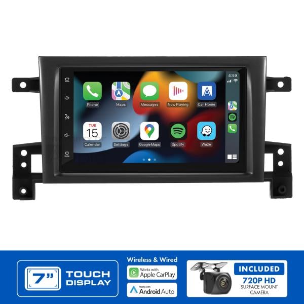 The Aerpro AM8165K package offers a comprehensive head unit upgrade solution that includes an Aerpro AM7X Double DIN 7" Mechless AV Receiver, a Vehicle Specific Installation Kit and a 720P AHD universal reverse camera. Designed specifically for Suzuki Grand Vitara 2005-2013 vehicles, this package comes with all the necessary parts to complete the installation and retain important features such as steering wheel controls.