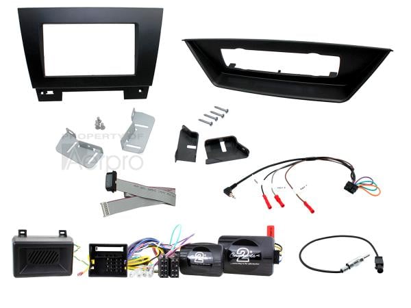Complete a full aftermarket double din headunit installation in your BMW X1 E84 (2010-2015) from start to finish with this Aerpro vehicle specific headunit installation kit, containing everything you need for a perfect upgrade in one box. This kit includes: Facia kit, metal brackets, button relocation panel, ribbon cable, screws, steering wheel control & warning tone interface, antenna adapter and universal patch lead. To make the installation process even easier, simply add Aerpro APP8 or APP9 aftermarket headunit harness adapters which will connect from the aftermarket headunit directly into the steering wheel control interface harness supplied in this kit.