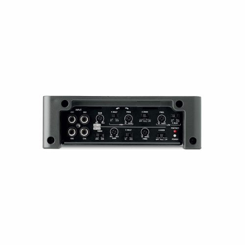 This powerful amplifier can drive front and rear speakers, or a hi-fi installation consisting of a front kit and a subwoofer. Featuring a 2/4-channel input mode, it is compatible with car radios with only a pair of line outputs.