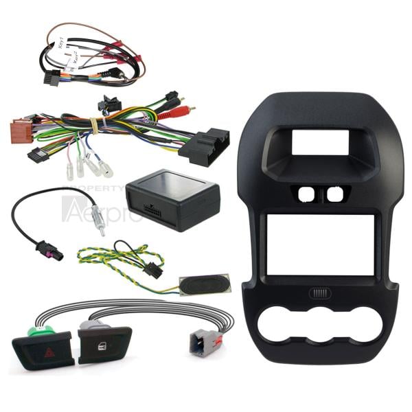 Complete a full aftermarket double din headunit installation in your Ford Ranger PX (2012-2015) with 4.2" OEM display, from start to finish with this Aerpro vehicle specific headunit installation kit, containing everything you need for a perfect upgrade in one box. This kit includes: black double din facia kit, metal mounting brackets, trim ring, hazard light & door locking buttons, steering wheel control interface, chime speaker, antenna adaptor and universal SWC patch lead. Installation of the aftermarket headunit is simplified even further when paired with the optional Aerpro APP9 Headunit Secondary ISO Harness & SWC Patch Lead, which connects between the aftermarket headunit and the Aerpro Steering Wheel Control Interface. The kit retains OEM vehicle settings and warning chimes and provides outputs for park brake, speed pulse, reverse gear and illumination.