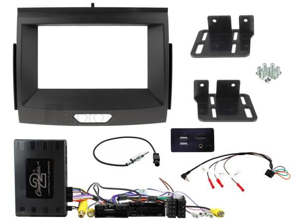 The Aerpro FP9129CT Head Unit Install Kit allows for the installation of an aftermarket double din AV head unit into Ford Everest UA (2015-2017) and Ranger PX2-PX3 (2015-2021) vehicles with an 8" display SYNC3 system. The black facia kit fits seamlessly into the dash of the vehicle and the included interface retains steering wheel controls, climate control functionality and display, park pilot functionality, as well as the original vehicle camera (if equipped). The kit comes supplied with a black double din facia kit, mounting brackets, infodaptor interface, vehicle specific harness, USB/AUX/HDMI input panel mount, antenna adaptor and universal SWC patch lead. To simplify the installation process we recommend using Aerpro APP8 aftermarket head unit harness (sold separately).