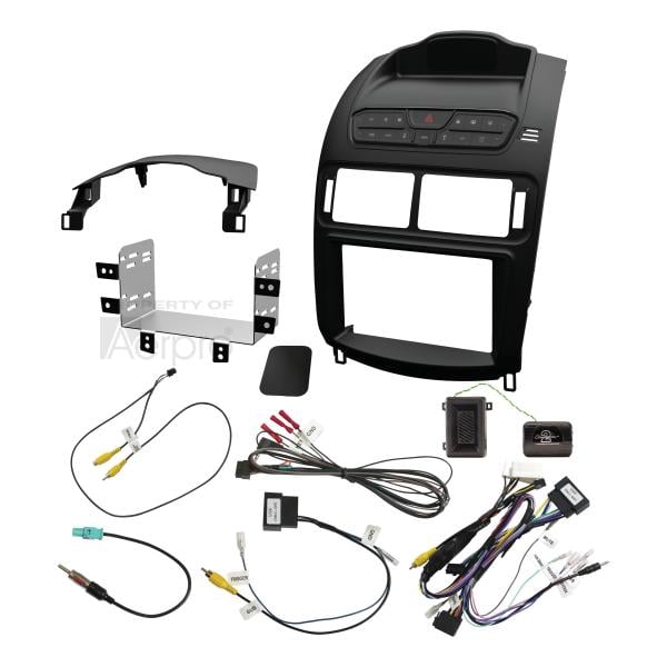 The Aerpro FP9680SK Head Unit Installation Kit enables aftermarket double din AV head units to be installed into Ford Falcon FG-X (2014-2016). The kit contains all the vehicle specific parts required to complete the installation including a satin black facia kit with built in H-VAC controller and steering wheel control interface, a satin black top dash panel, a mounting kit, a vehicle specific wiring loom, a video in/out loom, a reverse camera retention lead, a factory parking tone retention module, a subwoofer retention lead, a universal patch lead, an antenna adaptor and a MagMate phone plate. An Aerpro APP8 Series Aftermarket Head Unit ISO Harness is also required to complete the installation which connects from the aftermarket head unit directly into the vehicle harness supplied in this kit (sold separately). The facia kit has integrated buttons for HVAC control and displays the HVAC settings and other vehicle settings on the aftermarket AV head unit display when in use. It also has a built in MagMate Magnetic Phone Holder for convenient mounting of your smartphone in the vehicle. If the aftermarket head unit requires handbrake, reverse or speed pulse connection, these the outputs can be found on the main wiring loom included in the kit. Due to the design and features of this installation kit only aftermarket double din mechless shallow mount AV head units with RCA camera input and steering wheel control capability are recommended for installation.