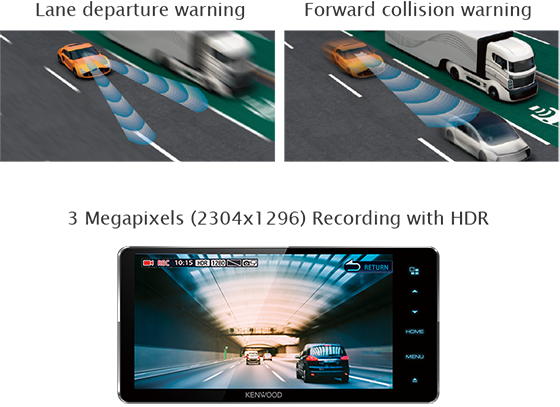 • *ADAS function uses the image processing technology commonly used in a digital camera, and its operating accuracy is realized only within the limits of the technology. It may not work as intended in some situations.