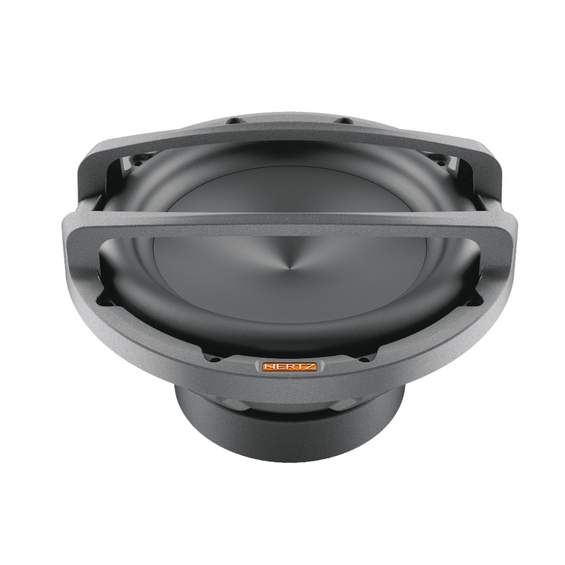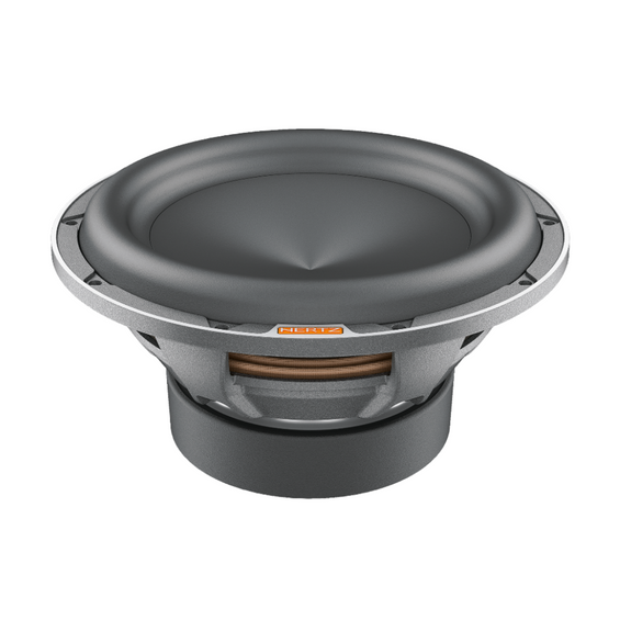 Outstanding performance in a compact size, this is the target of Mille Pro car audio subwoofers. On the strength of its know-how acquired with Mille Legend, the R&D team has optimized the production process to offer the “Hertz Sound Experience” to a wider audience using part of the technologies and materials of the flagship line. The MP 250 D4.3 cone is made by pressing paper pulp with the injection of mineral powders, the same construction technique used for Legend. The V-cone® profile increases rigidity, allowing the cone to function like a piston. Surround materials consist of high-purity IIR-butyl rubber. Like the Legend ML2000.3 and ML2500.3, the Mille PRO subwoofers are built with Boundary Free Surround technology allowing for a greater emission surface with equal diameter, generating higher sound pressure. The compact 6-spoke aluminum alloy anti-resonant basket is the same as the top model ML 2500.3 and contributes to the subwoofer’s mechanical damping, being absolutely transparent to the sound. The 65-mm 4-layer voice coil is higher than 60 mm and wound in a TIL-P former, thus delivering high linear displacement. The 4 Ω + 4 Ω DVC impedance configuration improves versatility to match any amplifier system. The air cooling and decompression system avoids the need for a centre hole on the bottom plate with three advantages: