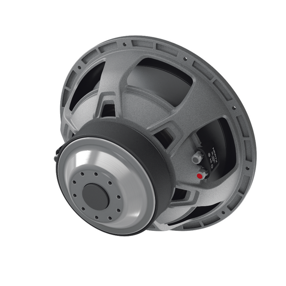 The holes behind the voice coil winding and the 10 vents on the bottom plate ensure greater air exchange to the coil inner layers and work in synergy with an innovative assembly system. It forces the air to pass through the air gap to keep the coil operating temperature low, even with the most extreme musical programs. The terminal uses solid push connectors with an antishort circuit cover accepting cables up to 8 AWG to provide ultra-low wiring resistance in low impedance configurations (1ohm).