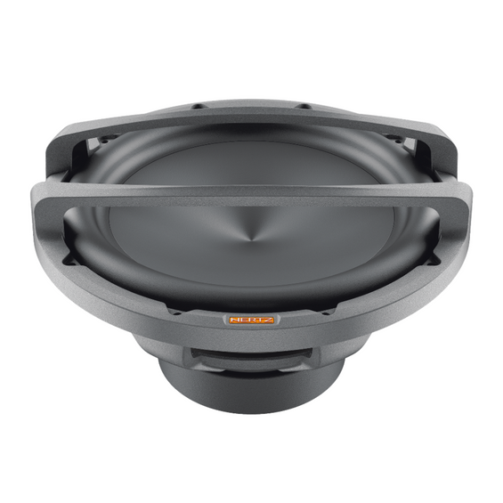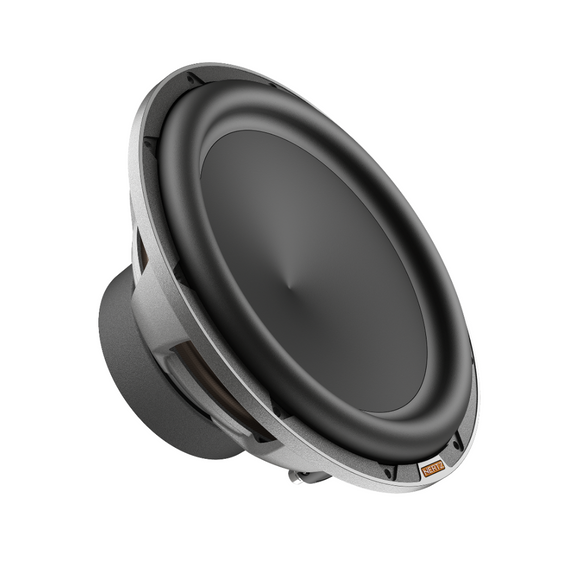 Outstanding performance in a compact size, this is the target of Mille Pro car audio subwoofers. On the strength of its know-how acquired with Mille Legend, the R&D team has optimized the production process to offer the “Hertz Sound Experience” to a wider audience using part of the technologies and materials of the flagship line. The MP 300 D4.3 cone is made by pressing paper pulp with the injection of mineral powders, the same construction technique used for Legend. The V-cone® profile increases rigidity, allowing the cone to function like a piston. Surround materials consist of high-purity IIR-butyl rubber. Like the Legend ML2000.3 and ML2500.3, the Mille PRO subwoofers are built with Boundary Free Surround technology allowing for a greater emission surface with equal diameter, generating higher sound pressure. The compact 6-spoke aluminum alloy anti-resonant basket is the same as the top model ML 2500.3 and contributes to the subwoofer’s mechanical damping, being absolutely transparent to the sound. The 65-mm 4-layer voice coil is higher than 60 mm and wound in a TIL-P former, thus delivering high linear displacement. The 4 Ω + 4 Ω DVC impedance configuration improves versatility to match any amplifier system. The air cooling and decompression system avoids the need for a centre hole on the bottom plate with three advantages: