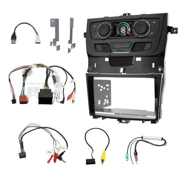 Designed and engineered in Australia, the Aerpro FP9550BK Head Unit Install Kit allows for the installation of an aftermarket double din head unit into Holden VE Series 2 vehicles. The piano black kit is compatible with SV6, SV6Z, SS, SSZ and SSV variants that have black trim around the factory display and climate control unit. The kit retains important factory features including steering wheel controls, reverse camera, AUX input, USB input and microphone, and the integrated IPS display shows outside temperature, climate control and factory parking sensor visualisation. It also features dual USB pass through ports as well as hand brake, reverse gear and speed pulse outputs. This kit includes: double din facia kit, piano black trim panel, built-in HVAC and SWC unit, universal SWC patch lead, USB retention lead, camera retention lead, antenna adaptor, mounting kit, support brackets and a manual. To simplify the installation process we recommend using Aerpro APP8 or APP9 aftermarket head unit harnesses (sold separately).
