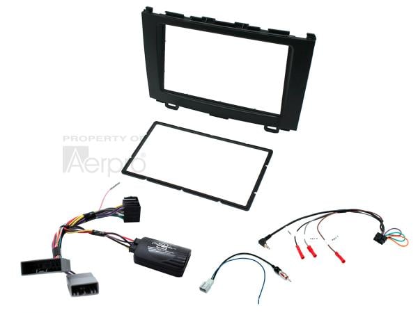 Complete a full aftermarket double din headunit installation in your Honda CRV RE (2007-2011) from start to finish with this Aerpro vehicle specific headunit installation kit, containing everything you need for a perfect upgrade in one box. This kit includes: Facia kit, trim ring, steering wheel control interface, antenna adapter and universal patch lead. To make the installation process even easier, simply add Aerpro APP8 or APP9 aftermarket headunit harness adapters which will connect from the aftermarket headunit directly into the steering wheel control interface harness supplied in this kit.
