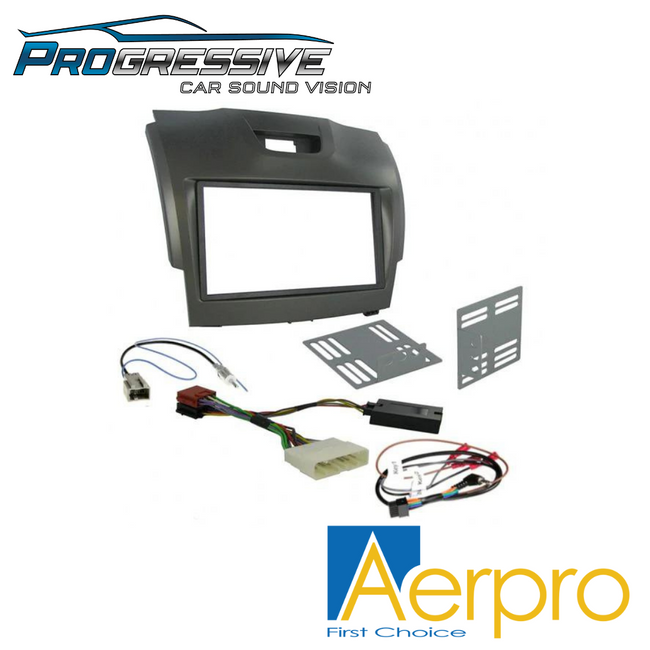 Complete a full aftermarket double din headunit installation in your Holden Colorado (2012-2014), Colorado 7 (2012-2014); Isuzu D-Max+ (2012-on), MU-X+ (2013-on), from start to finish with this Aerpro vehicle specific headunit installation kit, containing everything you need for a perfect upgrade in one box. This kit includes: gunmetal grey double din facia kit, metal mounting brackets, steering wheel control interface, antenna adaptor and universal SWC patch lead. Installation of the aftermarket headunit is simplified even further when paired with the optional Aerpro APP9 Headunit Secondary ISO Harness & SWC Patch Lead, which connects between the aftermarket headunit and the Aerpro Steering Wheel Control Interface.