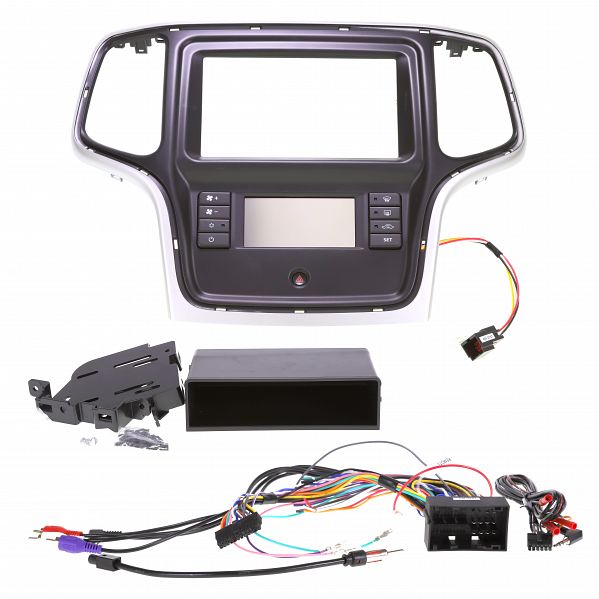 Complete a full aftermarket single or double din headunit installation in your Jeep Grand Cherokee WK (2014) from start to finish with this Aerpro vehicle specific headunit installation kit, containing everything you need for a perfect upgrade in one box. This kit includes: Facia kit with vehicle integration module and colour touch screen, mounting brackets, pocket, control harness and antenna adapter. This kit will retain the OEM amplifier, reverse camera, parking tones, AUX input, steering wheel controls, heated/cooled seats and heated steering wheel (where applicable). The wiring harness does not include the standard ISO connector system and will need to be soldered to the aftermarket headunits wiring loom.