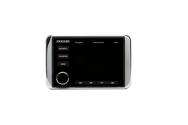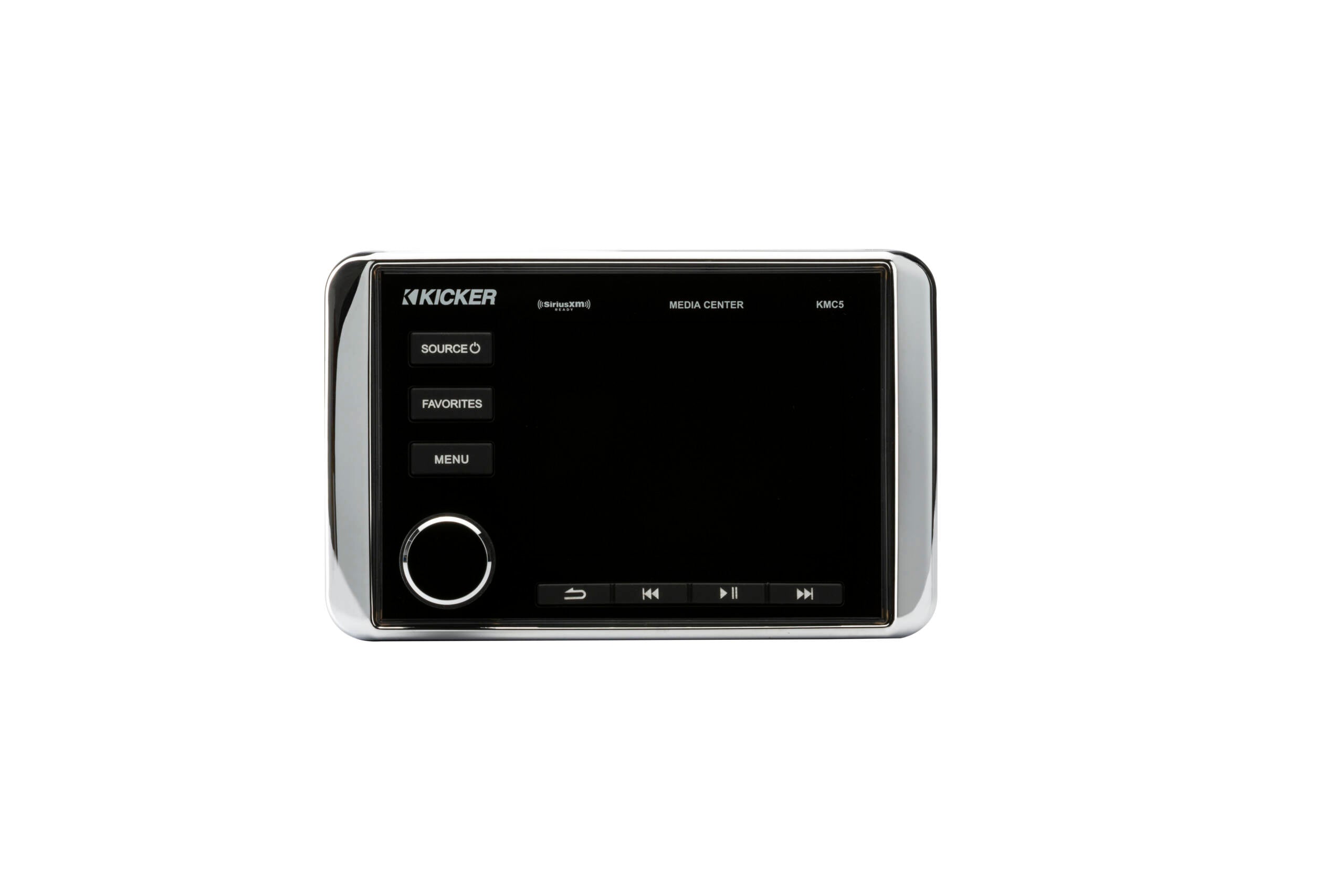 Connect to Your Music Connect your Bluetooth to the KMC5, plug into the USB or RCA inputs, or turn on the AM/FM or satellite radio. Add a wired KRC12 Remote Commander or KRC55 Digital Remote Controller for even more control. This durable Media Center is ready for some fun on the water! (IP66) Charging USB w/Thumb-Drive Playback Bluetooth Connectivity Full-Color LCD Display SiriusXM ready 3” Hole Cutout Dedicated Zone 2 speaker outputs NMEA Port Video RCA Input with Remote trigger wire AM/FM and Weather-band Tuner Up to 16 Favorites for each source: AM, FM and SiriusXM Front, Rear, Subwoofer and Zone-2 RCA Outputs AUX RCA Input Day/Night Mode Low Battery alert Loudness control Customizable EQ with Five Presets Voltage Display