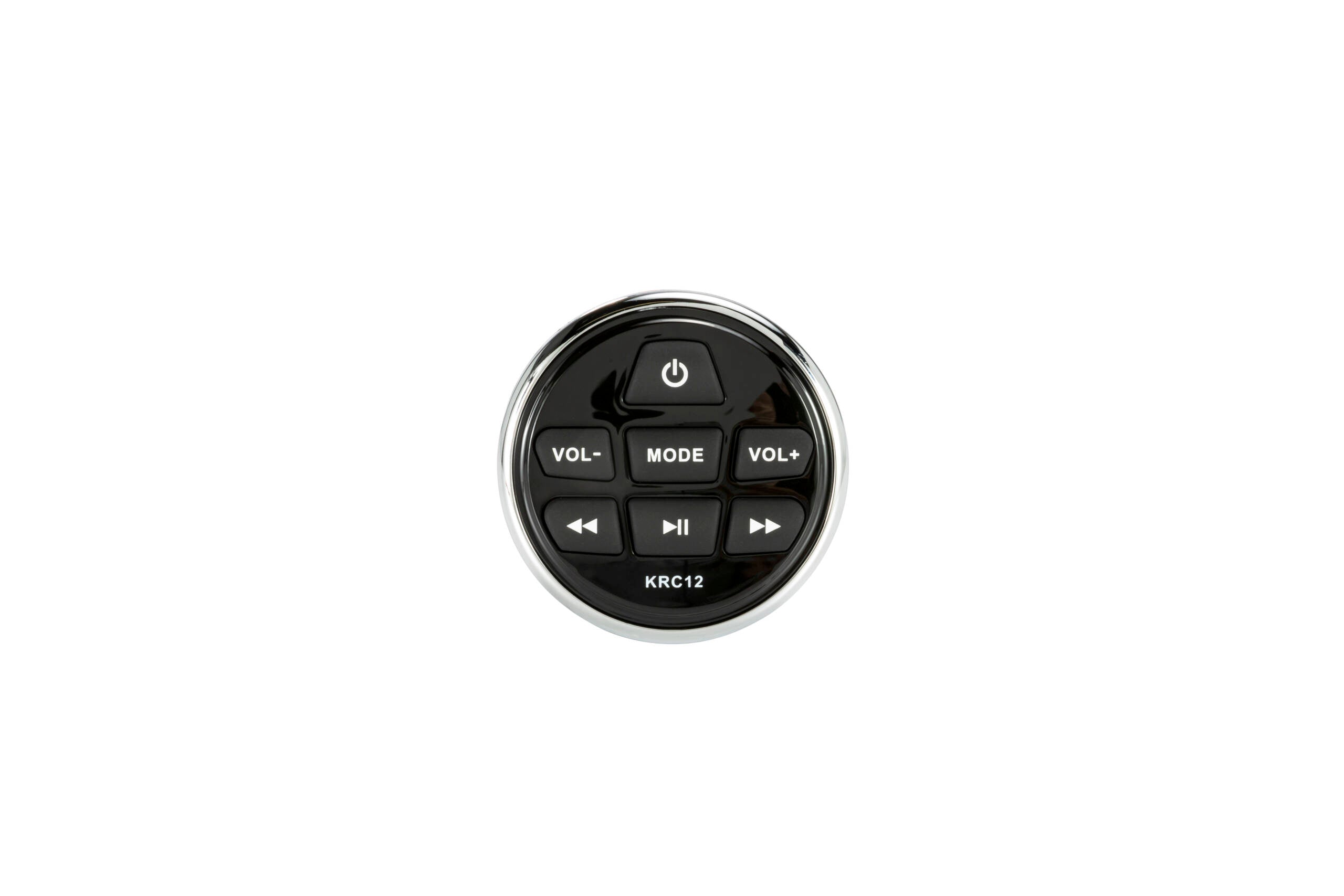 Total Convenience Have a remote control anywhere and everywhere you want. The KRC12 remote lets you change your music with the push of a button! The KRC12 works with all current KICKER media center/radios Accessorize Volume/Track/Station/Source Control included Mount as many KRC12s as you need, wherever you need them Fully marinized and ready for the water with an IP66 rating Easily control your sound while cruising Comes with 25’ cable