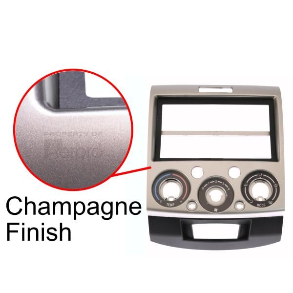 The FP7500 is a champagne colour facia that will enable the installation of either a double or single DIN headunit. It features cut outs for factory hazard lights button, A/C and rear demister buttons plus heater/cooling controls.