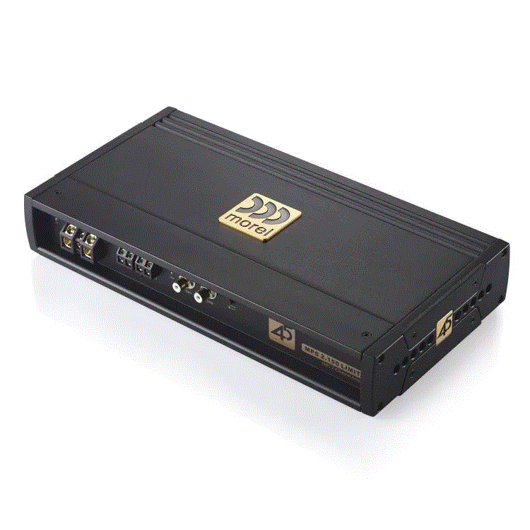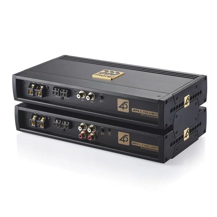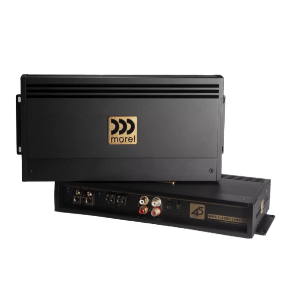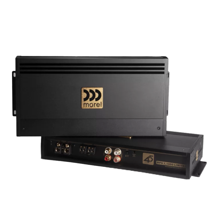 Developed to the highest standards to celebrate Morel’s **45th anniversary**, the MPS LIMITED series consists of two models: a **2-channel Class AB** and a **Class D monoblock**. They utilize audiophile-grade components, including **Burr-Brown OPA2134 op-amps**, Rubicon and WIMA ultra-low ESR capacitors, Sanken output transistors, and gold plated connections. Noise eliminating **balanced line inputs** accept signals up to **20 volts**. Removable side panel plates allow for unique mounting options and enable amplifiers to be stacked together to minimize their footprint. This superior design gives the MPS LIMITED the power and performance to drive any Morel system to its maximum.