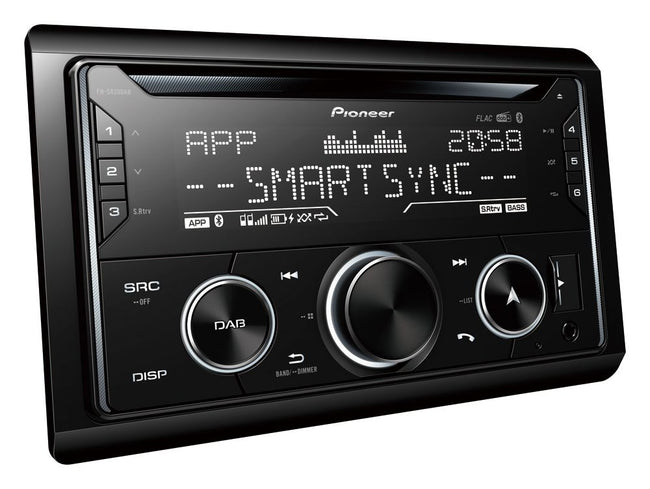 2-DIN CD Tuner with DAB/DAB+, Bluetooth®, multi colour illumination, USB, Pioneer Smart Sync App and compatible with Apple and Android devices.
