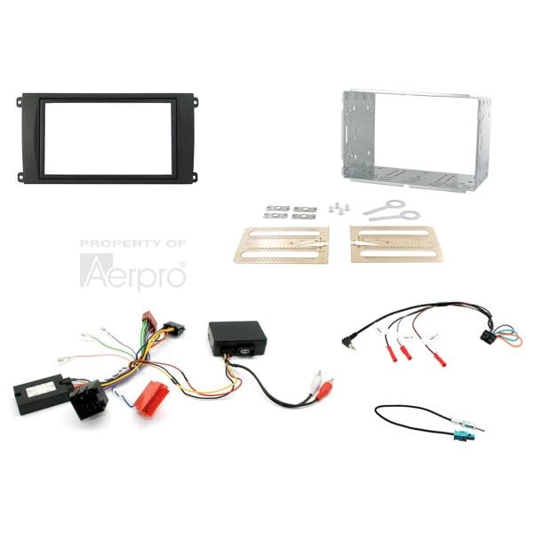 Complete a full aftermarket double din headunit installation in your Porsche Cayenne (2002-2008) with PCM2.1 factory headunit system from start to finish with this Aerpro vehicle specific headunit installation kit, containing everything you need for a perfect upgrade in one box. This kit includes: Facia kit, mounting cradle, OEM headunit removal keys, steering wheel control interface with amp retention, antenna adapter and universal patch lead. To make the installation process even easier, simply add Aerpro APP8 or APP9 aftermarket headunit harness adapters which will connect from the aftermarket headunit directly into the steering wheel control interface harness supplied in this kit.