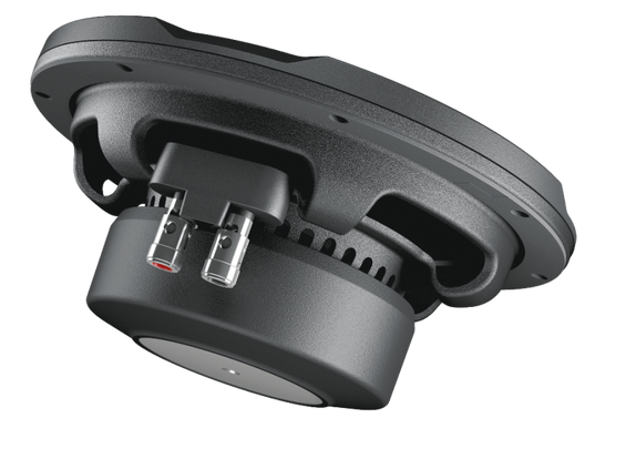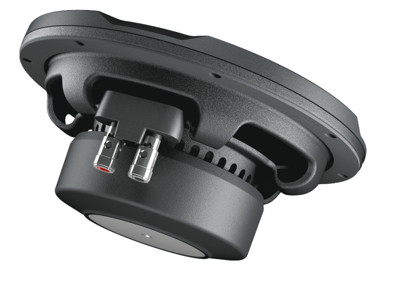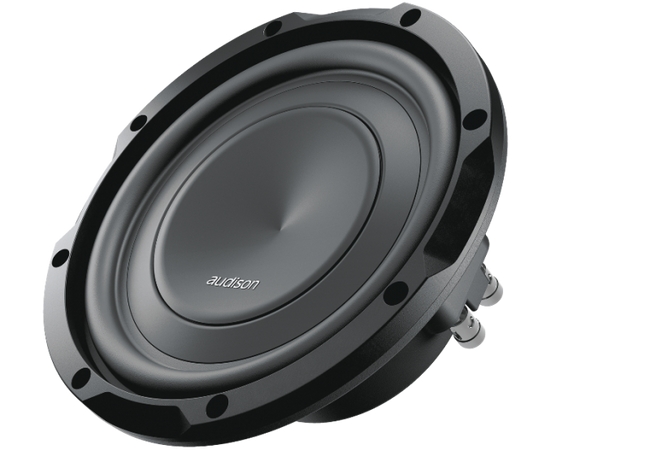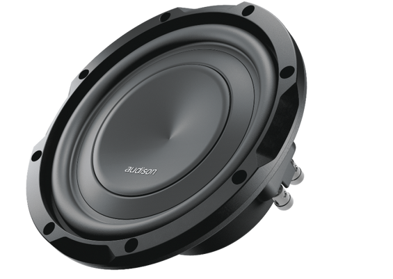 The APS 8 D is designed to deliver maximum performance in a sealed enclosure with ultra-compact volumes from 7.5 lt. to 8.5 lt. It features push connectors for ease of wiring and configurations and has been developed with a primary goal: to deliver high output in tight spaces. Output is a matter of excursion; the more air the cone moves, the more output. However reduced mounting depth traditionally has meant low excursion. Prima subwoofers employ a special cone-dustcap-basket geometry which guarantees large excursion of the mobile group, while keeping the mounting depth to a minimum. The surround and spider have been carefully designed to prevent the rocking-mode phenomenon. The cooling circuit has been designed with air vents on the basket underneath the spider, eliminating the need for vents on the bottom-plate. This allows the subwoofer to be mounted close to the back wall of the enclosure, making the most of the reduced mounting depth.