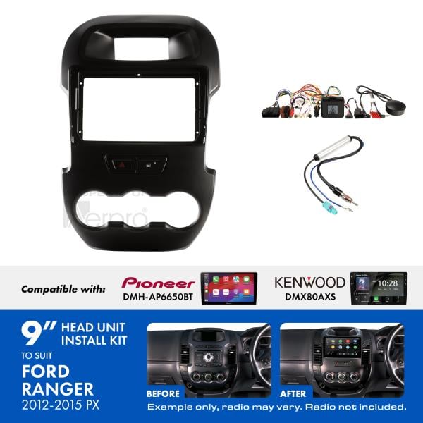 The Aerpro AKFO2 9" Installation Kit comes with all of the components required to install a 9" trapezoid shaped radio into your Ford Ranger 2012-2015 (PX) vehicles whilst maintaining important vehicle features such as Steering Wheel Control functionality.