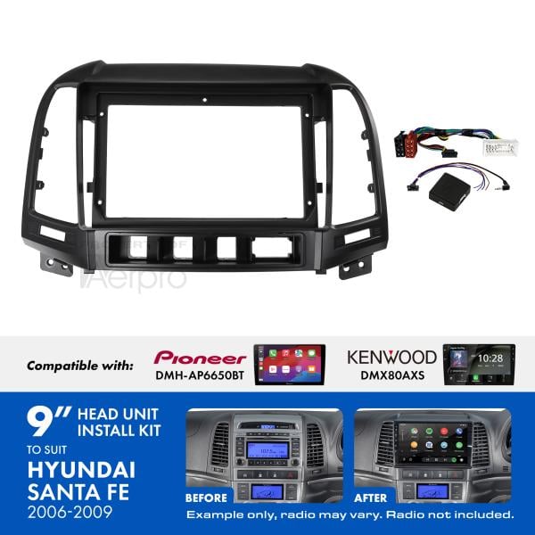 The Aerpro AKHY19 9" Installation Kit comes with all of the components required to install a 9" trapezoid shaped radio into your Hyundai Santa Fe (2006-2009) non amplified vehicles whilst maintaining important vehicle features such as Steering Wheel Control functionality.