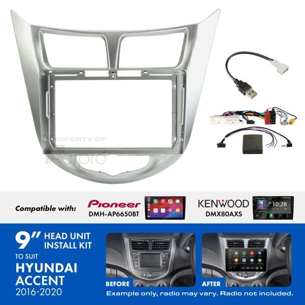The Aerpro AKHY23 9" Installation Kit comes with all of the components required to install a 9" trapezoid shaped radio into your Hyundai Accent (2016-2020) vehicles whilst maintaining important vehicle features such as Steering Wheel Control functionality.