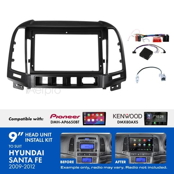 The Aerpro AKHY5 9" Installation Kit comes with all of the components required to install a 9" trapezoid shaped radio into your Hyundai Santa Fe (2009-2012) vehicles whilst maintaining important vehicle features such as Steering Wheel Control functionality.