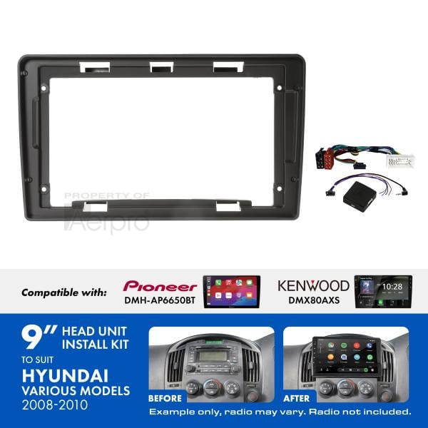 The Aerpro AKHY7 9" Installation Kit comes with all of the components required to install a 9" trapezoid shaped radio into your Hyundai iLoad and iMax (2008-2015) vehicles with EQ button on factory radio whilst maintaining important vehicle features such as Steering Wheel Control functionality.