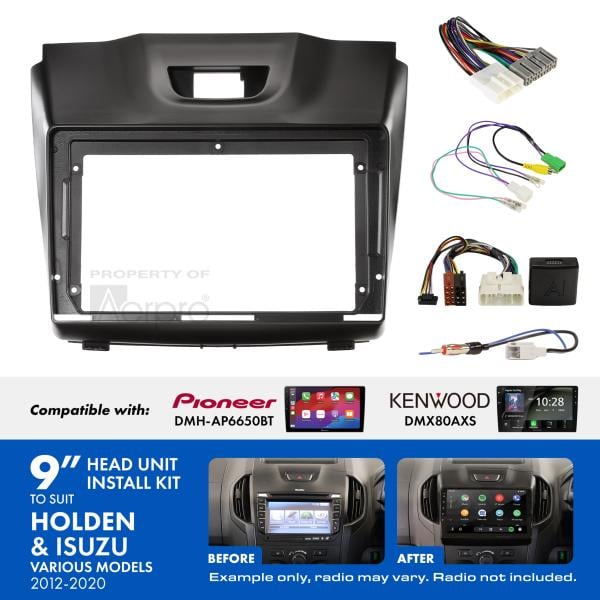 The Aerpro AKIZ1B 9" Installation Kit comes with all of the components required to install a 9" trapezoid shaped radio into your Holden Colorado (inc 7) 2012-2014, Isuzu D-Max 2012-2020 and Isuzu MU-X 2013-2017 vehicle whilst maintaining important vehicle features such as Steering Wheel Control functionality.