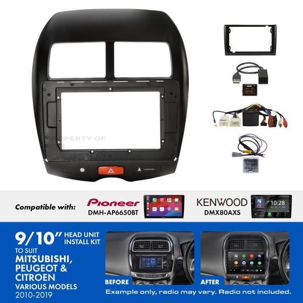 The Aerpro AKMB14 9/10" Installation Kit comes with all of the components required to install a 9/10" trapezoid shaped radio into your Mitsubishi ASX (2010-2019), Citroen C4 (2012-), Peugeot 4008 (2012-2013) vehicles whilst maintaining important vehicle features such as Steering Wheel Control functionality.