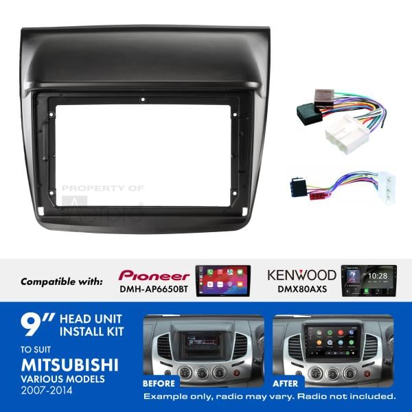 The Aerpro AKMB23 9" Installation Kit comes with all of the components required to install a 9" trapezoid shaped radio into your Mitsubishi Triton 2007-2014 (vehicles without Steering Wheel Controls)