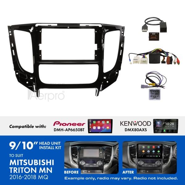 The Aerpro AKMB8 9" Installation Kit comes with all of the components required to install a 9" trapezoid shaped radio into your Mitsubishi Triton (2016-2018) vehicles with automatic climate control, whilst maintaining important vehicle features such as Steering Wheel Control functionality.