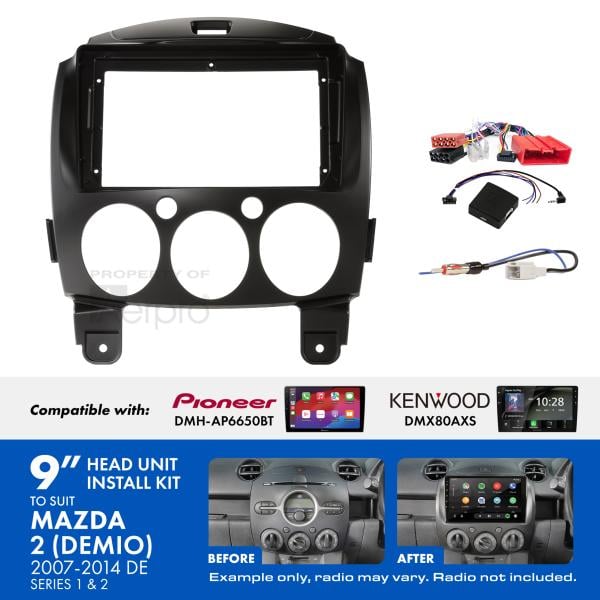 The Aerpro AKMZ7 9" Installation Kit comes with all of the components required to install a 9" trapezoid shaped radio into your Mazda 2 2007-2014 (DE) vehicles with Steering wheel controls, whilst maintaining important vehicle features such as Steering Wheel Control functionality.