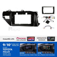 The Aerpro AKTO3 9/10" Installation Kit comes with all of the components required to install a 9/10" trapezoid shaped radio into your Toyota Hilux (2020-) vehicles without factory amplifier, whilst maintaining important vehicle features such as Steering Wheel Control functionality.