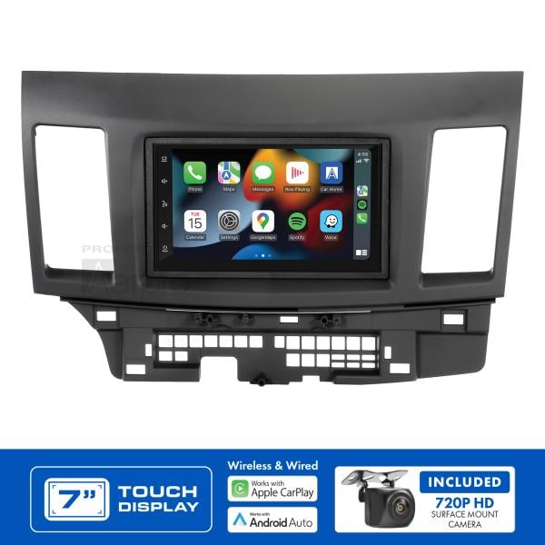 The Aerpro AM9037K2 package offers a comprehensive head unit upgrade solution that includes an Aerpro AM7X Double DIN 7" Mechless AV Receiver, a Vehicle Specific Installation Kit and a 720P AHD universal reverse camera. Designed specifically for Mitsubishi Lancer 2010-2013 vehicles, this package comes with all the necessary parts to complete the installation and retain important features such as steering wheel controls.