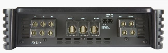 AV 5.1k, 1650 W (RMS) max, five channels: with its hybrid design, it is the specialist amplifier for front + rear + subwoofer or multi-amplified front + subwoofer systems.