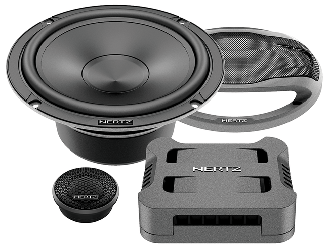 The Hertzaudio Cento Pro CPK 165 PRO car audio system includes the CP 165 woofer and the CP 25 tweeter with Tetolon dome and 25 mm voice coil, features ensuring a very wide and linear frequency response. The CP 25 employs the “Center Tuning Duct” technology: the tunnel at the center of the powerful Neodymium magnetic circuit, ensures low-temperature air exchange between the dome and the rear loading chamber, perfectly tuning the acoustics. The resulting very low resonance frequency is also functional for the woofer crossover point, elevating the sound stage. The sophisticated design of the mobile group and suspensions of the CP 165 woofer, featuring a 60Hz calibrated resonance frequency, ensures a medium-low power with excellent punch, making listening to rich low frequency genres a unique experience. The basket is consistent with the family-feeling of the Mille line with the addition of damping and protective rubber. The cone material is inherited from the Mille Pro, as well as the suspension butyl rubber and the Tetolon fiber of the tweeter dome. These materials have excellent damping and lightness characteristics, producing a balanced sound without resonance peaks. The gift box includes the woofers grilles made of a combination of metallic mesh and high resistance ABS plastic frame. The combination of these two elements allows the user to customize the installation with a sophisticated and elegant design.