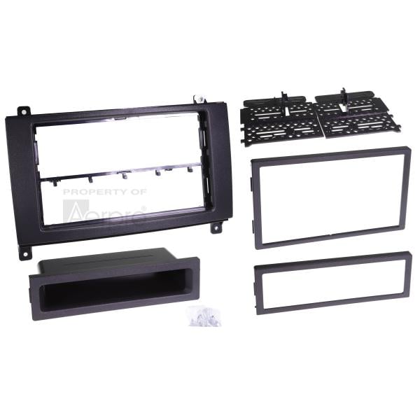 The FP8529 black facia kit is suitable for mounting an aftermarket single or double din headunit into various Mercedes and Volkswagen vehicles, giving the new stereo installation a professional, OEM style appearance. The vehicle specific gap-free design blends in with the dashboard surrounds, providing a seamless upgrade solution. The facia kit is extremely durable, made from high grade ABS plastic that will withstand extreme temperatures and UV rays. It also comes supplied with mounting screws, various trim panels and a pocket.
