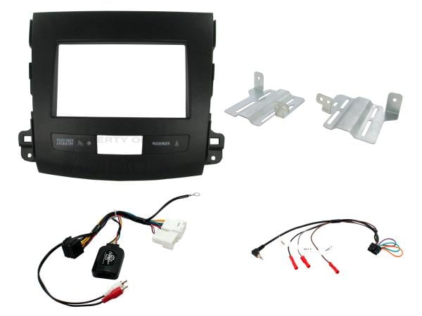 Complete a full aftermarket double din headunit installation in your Mitsubishi Outlander ZG, ZH (2007-2012) from start to finish with this Aerpro vehicle specific headunit installation kit, containing everything you need for a perfect upgrade in one box. This kit includes: Facia kit, metal brackets, steering wheel control interface and universal patch lead. To make the installation process even easier, simply add Aerpro APP8 or APP9 aftermarket headunit harness adapters which will connect from the aftermarket headunit directly into the steering wheel control interface harness supplied in this kit.